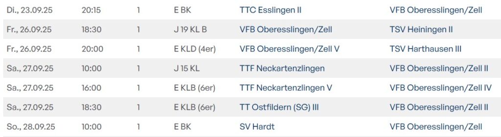 Jugend: VfB Oberesslingen/Zell U15 II – TTC Esslingen 0:10