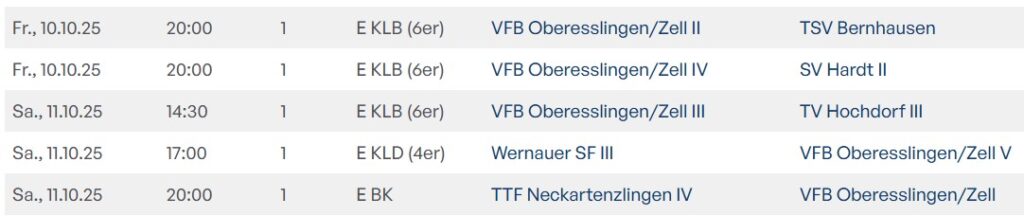 Einzel: F. Wunner 1:1, P. Oehler 0:2, G. Akca 2:0, N. Zack 1:1, T. Kern 1:1, M. Fiedler 0:2