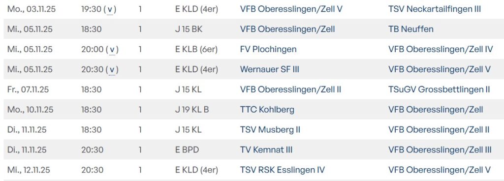 5.Mannschaft: VfB Oberesslingen/Zell V – TV Kemnat III 5:5